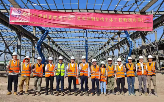 耐普礦機(jī)智利工廠廠房鋼結(jié)構(gòu)主體工程封頂合影